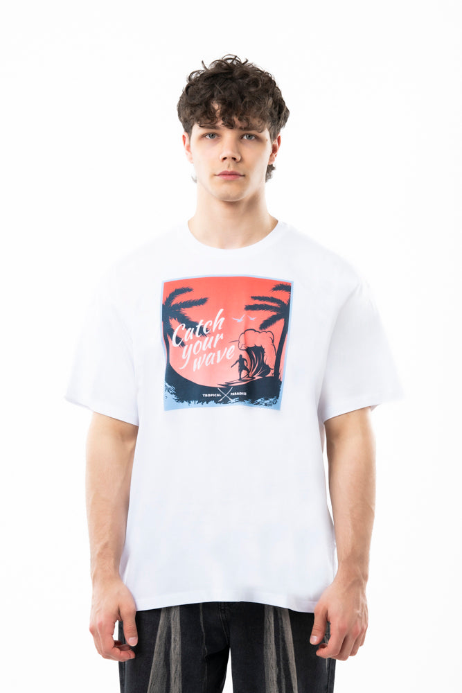 T-shirt Made in Italy in cotone con scollo tondo e stampa di alta qualità.